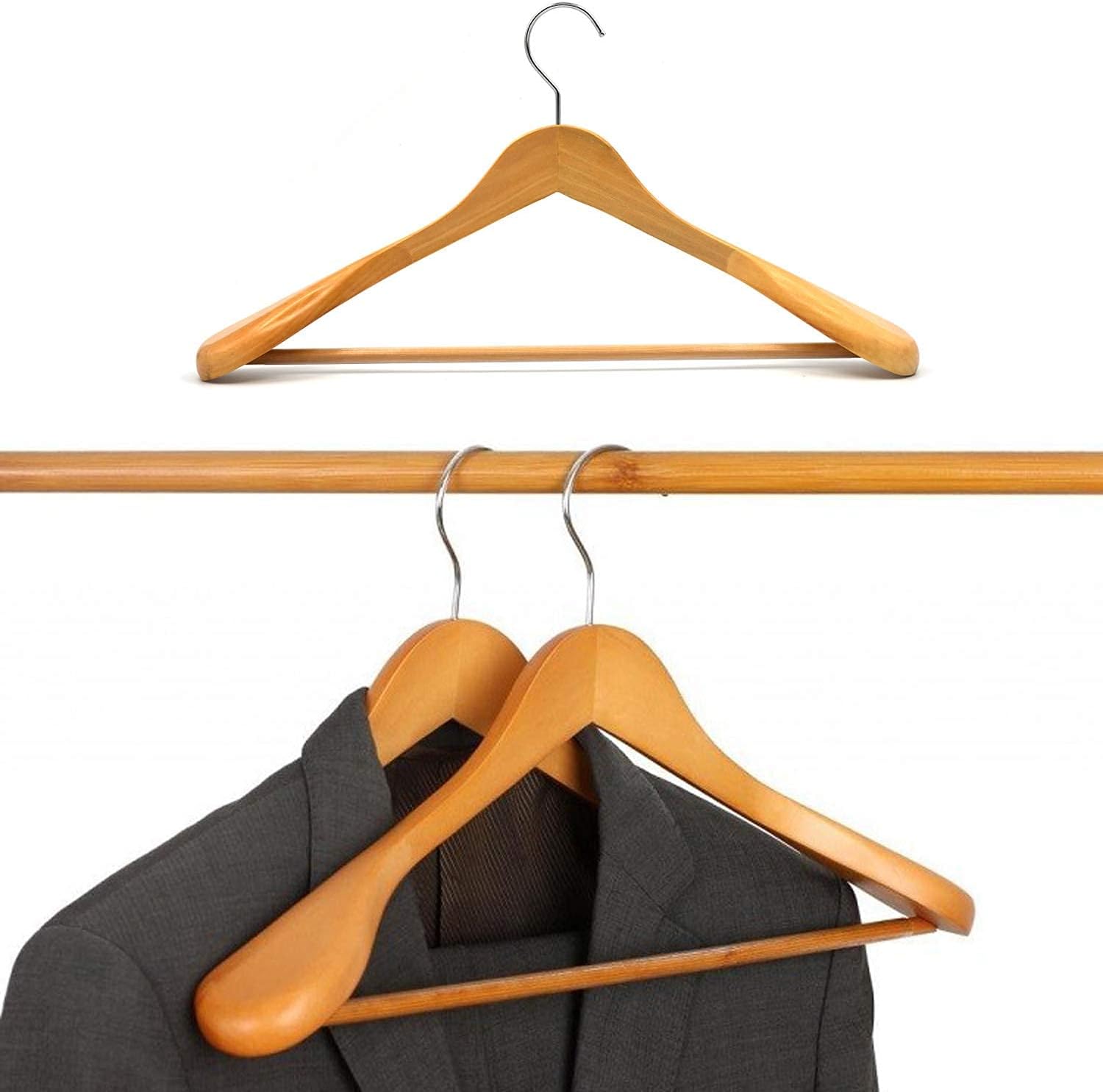 Home Deluxe Curved Solid Wood Coat Hanger Set of 6, Suit Hanger, Jacket Hanger with Sturdy Non-Slip Bar, Smooth Finish, Wide Shoulder Pack (Natural Color) (6)